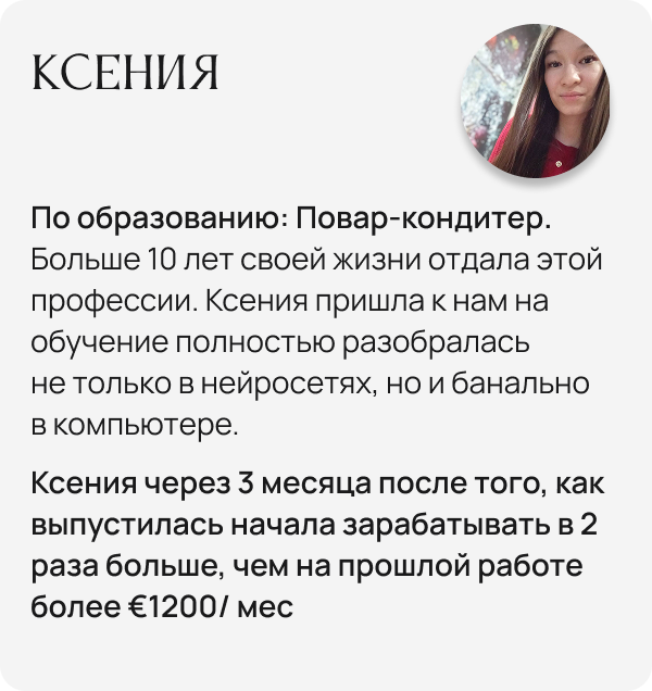 Помогла более чем 300+ ученикам выйти на новый уровень с ИИ